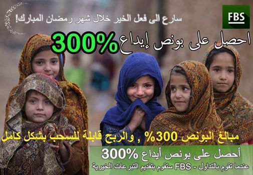 بونص احسان من شركة الفوركس القوية FBS هو عرض مقدم بمناسبة شهر رمضان المبارك وكما عودتنا شركة FBS انها دائما تقدم كل ماهو مميز فانها اليوم تقدم عرض احسان للمساهمة فى عمل الخير وهو عبارة عن بونص 300% مقدم من الشركة لجميع العملاء الحاليين والجدد ما هو بونص احسان من شركة FBS بونص احسان هو عرض من شركة FBS قيمته 300% على الايداع والحد الادنى للايداع هو 100 دولار وكل ما يخص الشركة من ربح ناتج عن الاسبريد او عمولات من صفقات اى عميل مشترك فى هذا العرض سيتم ارساله الى الجمعيات الخيرية على مستوى العالم مثل مؤسسة تونس الخيرية ومستشفى 57357 لعلاج سرطان الاطفال بمصر ومؤسسات اخرى كثيرة فعند فتح صفقات اكثر ستكون مساهما فى الخير وتساعد محتاجين اكثر وتساهم فى علاج اطفال اكثر طريقة الحصول على بونص احسان من شركة FBS كل ما عليك فعله هو التسجيل من خلال هذا الرابط ستدخل الى صفحة بونص احسان 300% من شركة FBS وكل ما عليك فعله هو الضغط على كلمة شارك لتظهر لك صفحة التسجيل مباشرة فى بونص 300% فقم بالتسجيل وتفعيل الحساب وعمل الايداع بحد ادنى 100 دولار فيتم اضافة البونص الى حسابك مباشرة بعد الايداع واحصل على بونص قابل للتداول وهو بونص يسمح لك بالتداول وعمل الخير فى نفس الوقت شروط بونص احسان من شركة FBS 1- فترة الاشتراك فى العرض من يوم 1/6/2016 الى يوم 11/7/2016 2- الحد الادنى للحصول على بونص احسان 300% هو 100 دولار ايداع 3- افتح حساب احسان Ihsan من من خلال الرابط اعلاه او الموجود فى نهاية المقال 4- يجب على العميل التداول يوميا حتى ولو بعمل صفقة واحدة وله ان يتوقف عن التداول 3 ايام فى الشهر انضم لاكثر من مليون و250 الف متداول مع اقوى شركات الفوركس وسارع لفعل الخير خلال شهر رمضان مع بونص 300 % انضم الى شركة FBS وافتح حساب احسان واحصل على بونص 300% |